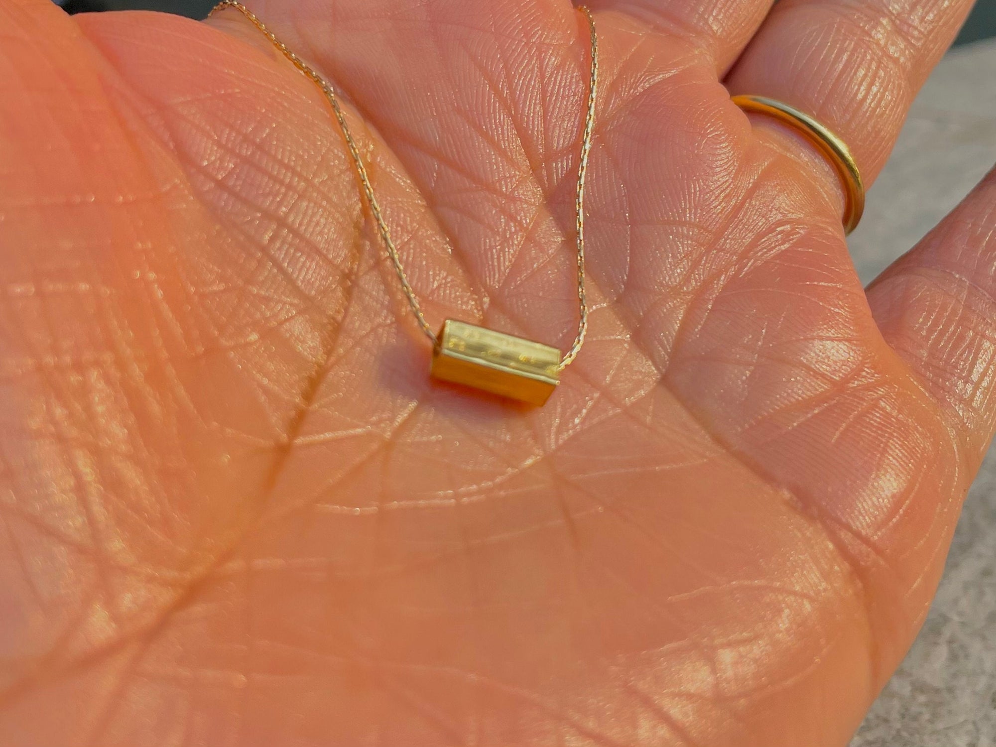 This dainty necklace is so cute, it will go perfectly with other necklaces. Very Happy with necklace and the Seller! AAA!!!!!